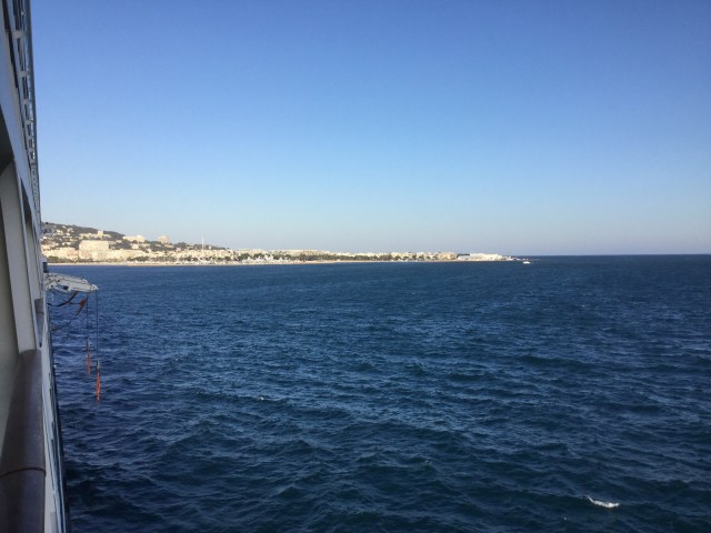 Ps. The cruise director just mentioned it will be twenty degrees today in Cannes, and we are sheltered here … Some gusts of wind expected so tender rides could be rocky too. We shall see. No excursions booked, just hanging out in or around Cannes and maybe afternoon on the ship.